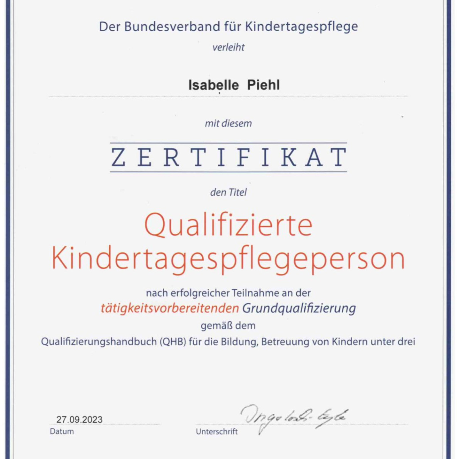 nach dem Qualifizierungshandbuch (QHB) für die Bildung, Betreuung von Kindern unter drei.